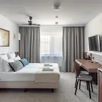 Le fantastique Airinn Vilnius Airport Hotel Renovated 2025 comprend 155 chambres équipées d'une TV à écran plat avec des chaînes satellite ainsi que d'un minibar et d'une cafetière/théière. Dotées des fenêtres insonorisées, les chambres disposent d'un mobilier élégant comprenant un bureau.